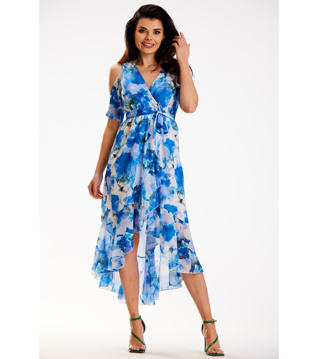 Асиметрична рокля от тюл в бяло и синьо Lesli