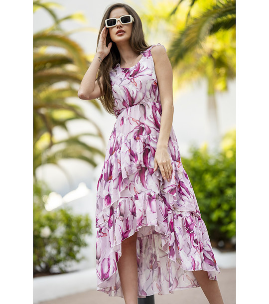 Асиметрична шифонена рокля в розово и циклама Ofelia