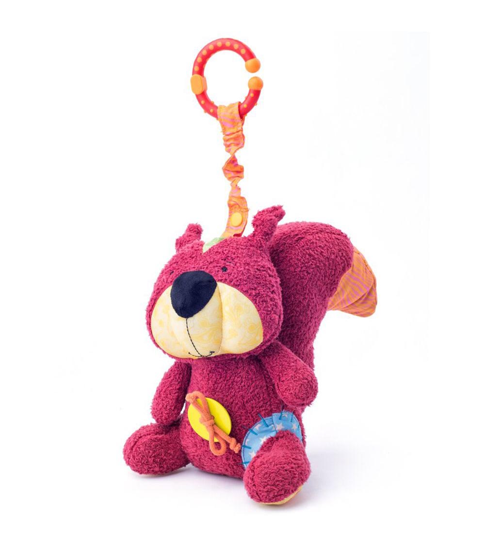 Играчката насърчава всички сензорни усещания на бебето. Съчетава мекия и нежен на допир плюш с различни материи, ярки цветове, шумящи части, дрънкалка и гризалка.