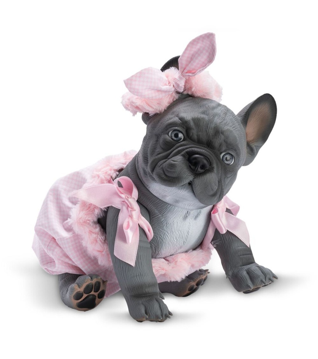 3-5 години, 5-7 години, 7-10 години Търсите малко кученце, за което да се грижи детето Ви?Предлагаме Ви очарователния сив френски булдог Лили, част от специалната колекция Animal Reborn на испанската марка Asi. С височина 32 см и изработено изцяло от мек и висококачествен винил, това куче е проектирано да впечатлява с реализъм и да насърчава у децата емпатия, грижа и отговорност към животните.Куклите с марка Asi са произведени в Испания с най-високо качество. Тъканите и производствените материали отговарят на всички разпоредби.Лили е мек и приятен на допир сив френски булдог. Изработен е изцяло от висококачествен винил. Облечен е в специално ушити дрешки - розово карирано гащеризонче с панделки за презрамки,панделка на главата в същия десен и пелена, като едно истинско бебе. Кученцето има образователна стойност. Идеално е за ролеви игри и обучение, като помага на децата да развиват отговорност, съпричастност и любов към животните. Подходяща е както за игра, така и за колекционери, които ценят качеството. Размери на играчката: 16 x 15 x 32 см.Тегло: 0,899 кг.Опаковка: торбичка с панделкаПрепоръчителна възраст: 3+ годиниПодарете на детето си или на себе си една уникална образователна играчка куче, която ще донесе радост и топлина.