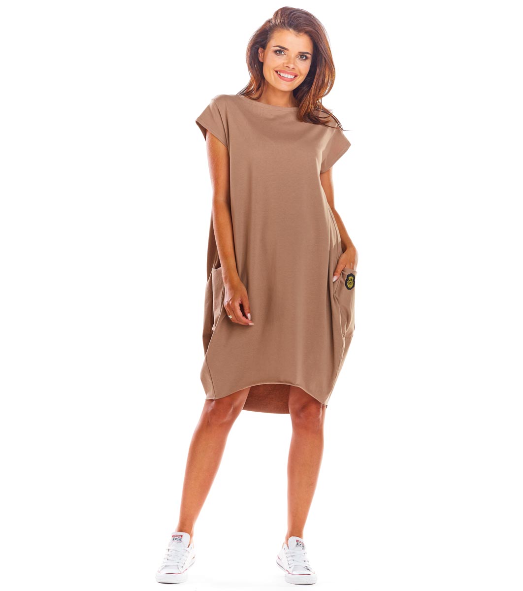 Бежова памучна рокля с джобове Lisa
