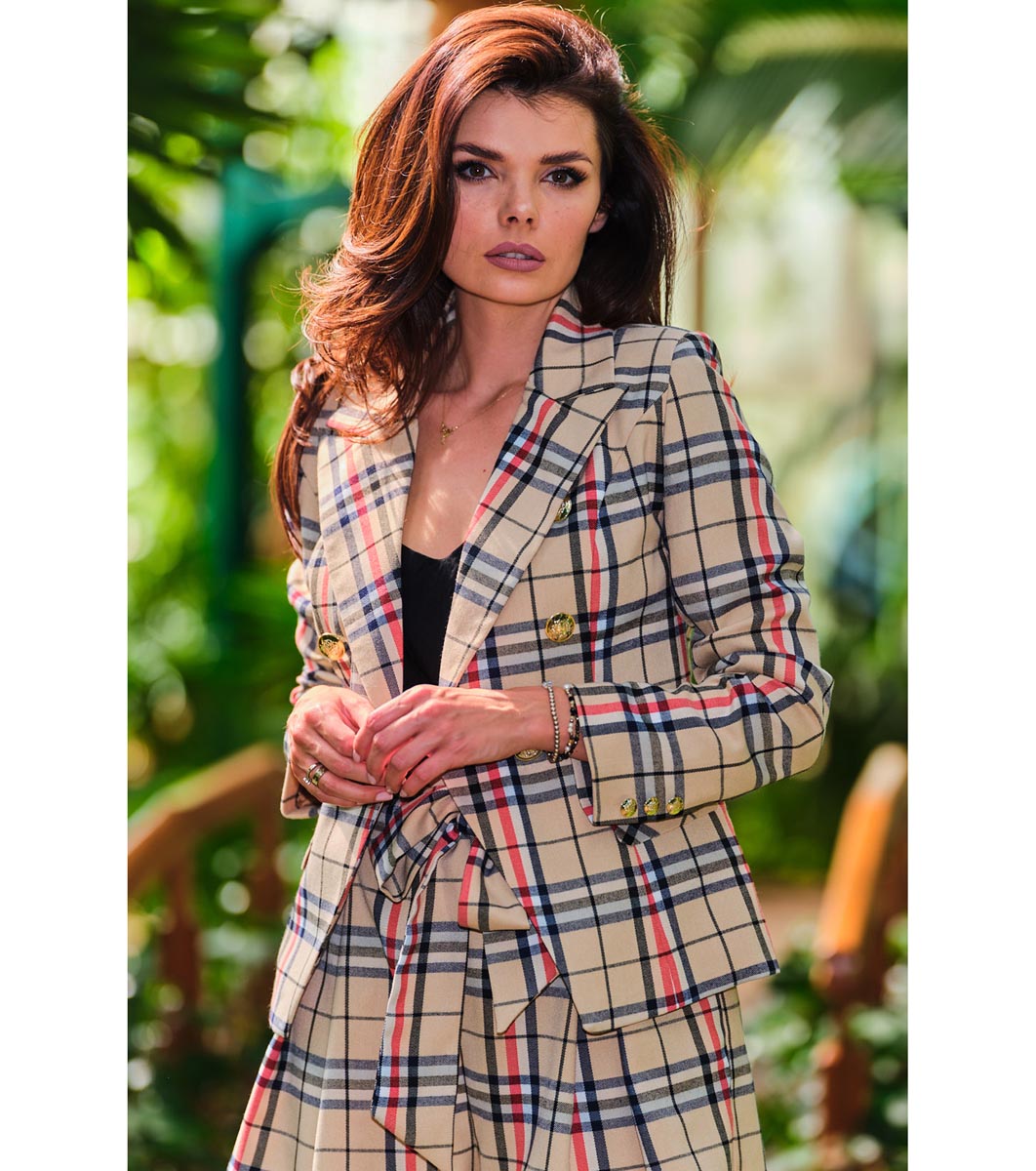 Бежово дамско сако на каре Nara