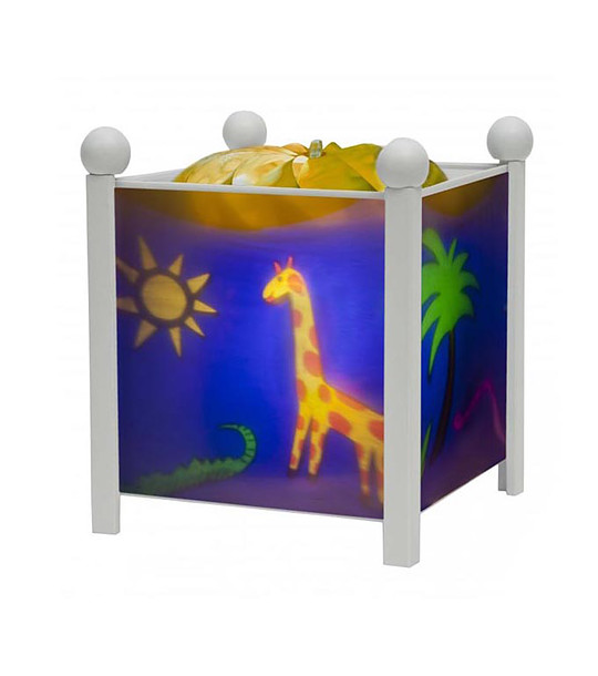 Включете магическата лампа в стаята на детето и след няколко минути, след като крушката нагрее стените на магическия фенер, по стените на стаята ще затанцуват сенките на животните от джунглата