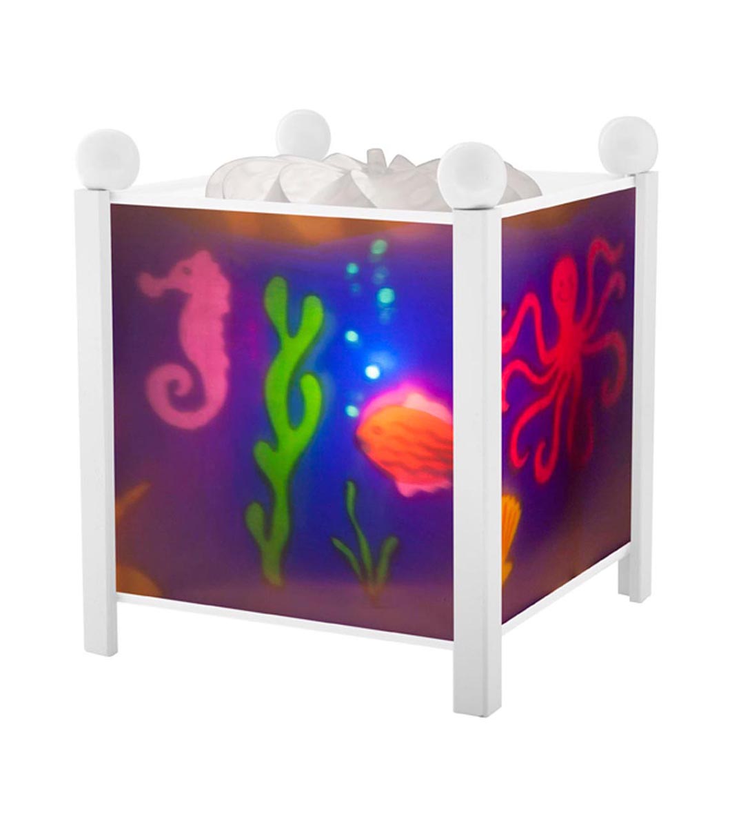 Включете магическата лампа в стаята на детето и след няколко минути, след като крушката нагрее стените на магическия фенер, по стените на стаята ще затанцуват сенките на морските обитатели.