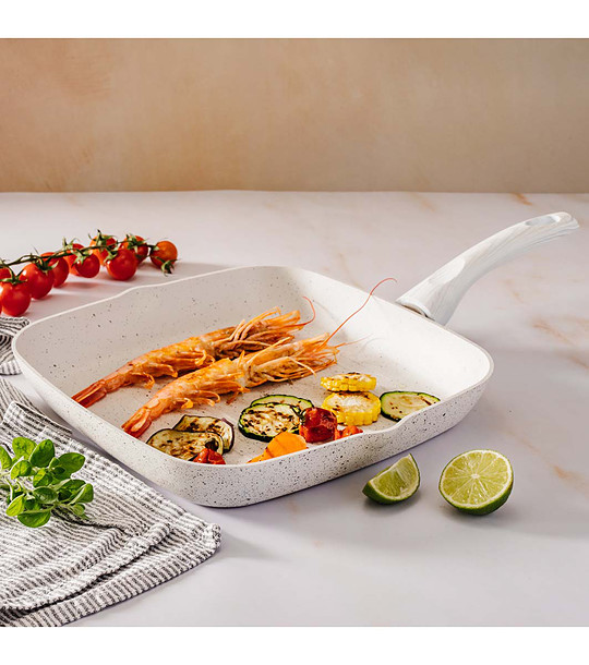 Покритието на тиганите Stone White е съставено от минерали, които изграждат повърхност за готвене, равна на истинския камък.