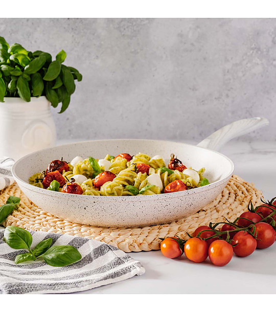 Покритието на тиганите Stone White е съставено от минерали, които изграждат повърхност за готвене, равна на истинския камък.