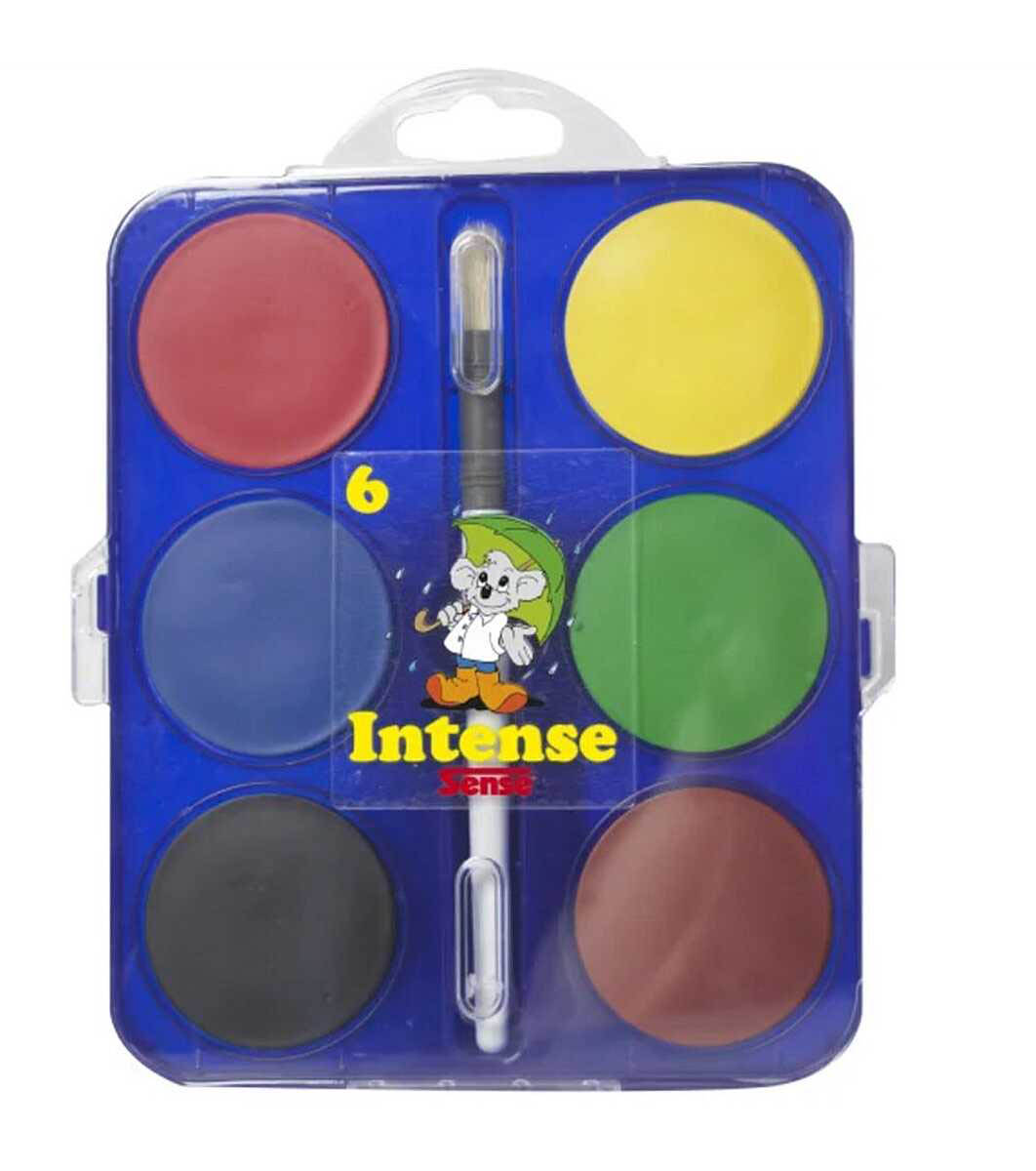 В този комплект боичкитe ca в 6-те основни цвятa - жълт, зeлeн, червен, кафяв, син и черен.