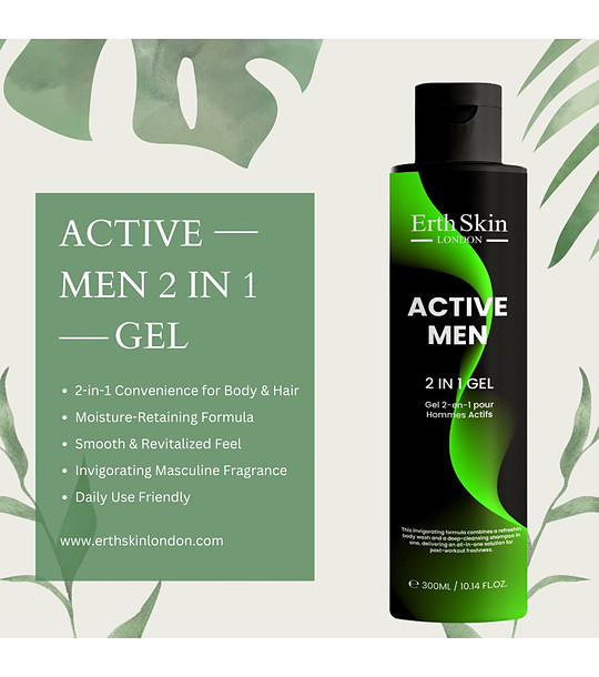 • Active Men 2-в-1 Gel е динамична формула, предназначена както за тяло, така и за коса, предлагаща освежаващо почистване в една стъпка.