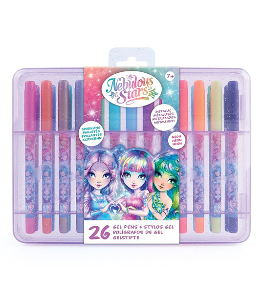 Цвят, блясък и вдъхновение за всяко творческо дете! Открий света на ярките цветове с този невероятен комплект от 26 гел химикалки Nebulous Stars, създадени за истински любители на рисуването, оцветяването и писането със стил.