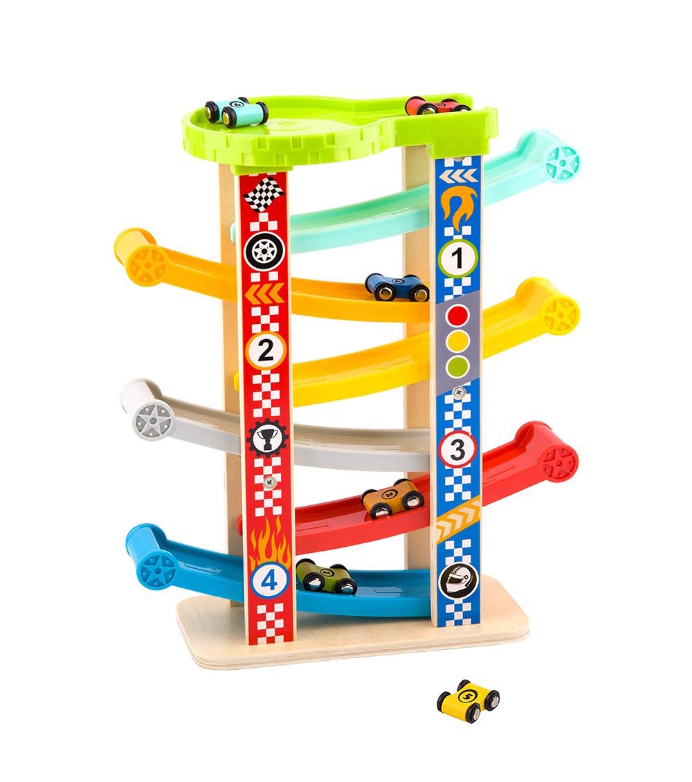 В комплекта ще откриете 6 състезателни коли и цветни рампи, по които да ги спускате и да се радвате на движението. Пригответе се за едно вълнуващо състезание и не позволявайте времето да ви изпревари.