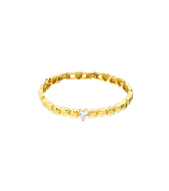 Елегантна гривна с изящни сърцевидни елементи и централен декоративен камък.