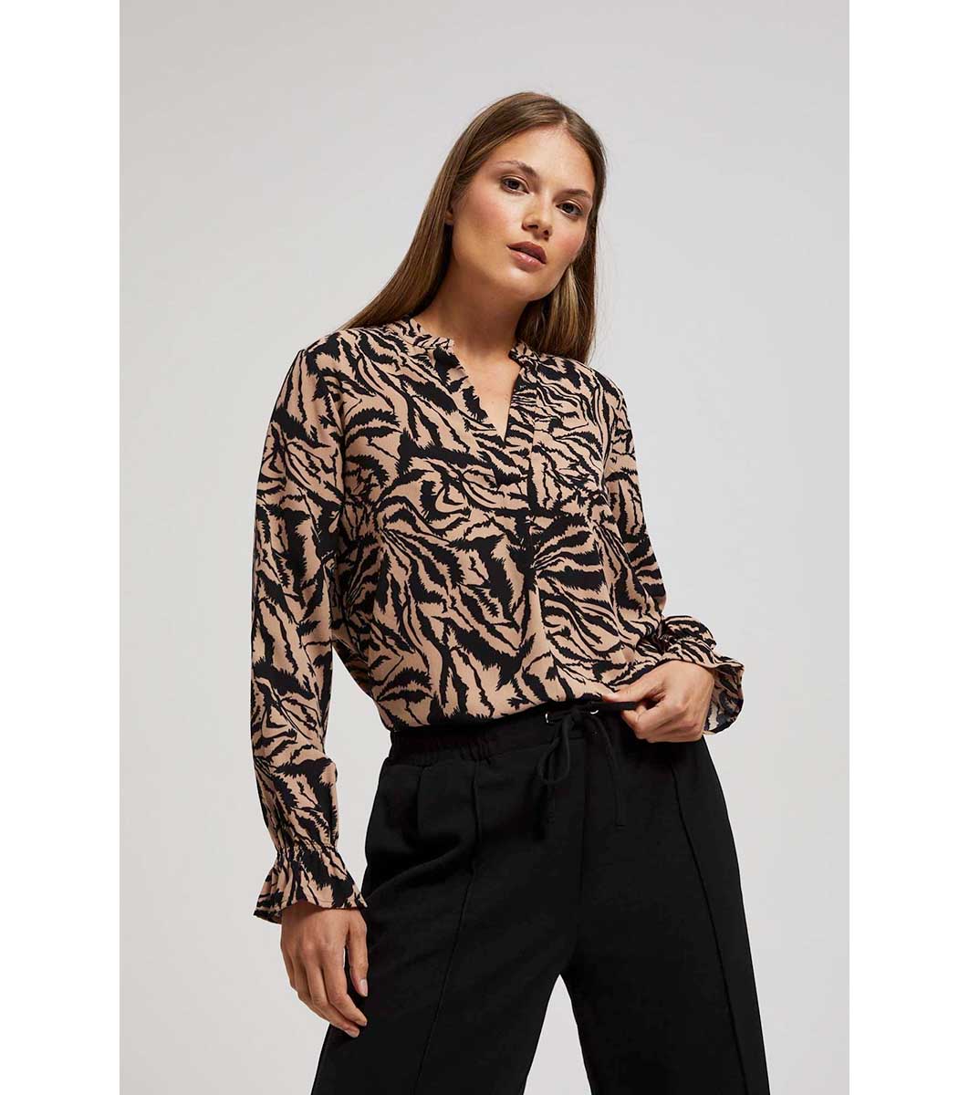 Дамска блуза в бежово и черно Azza