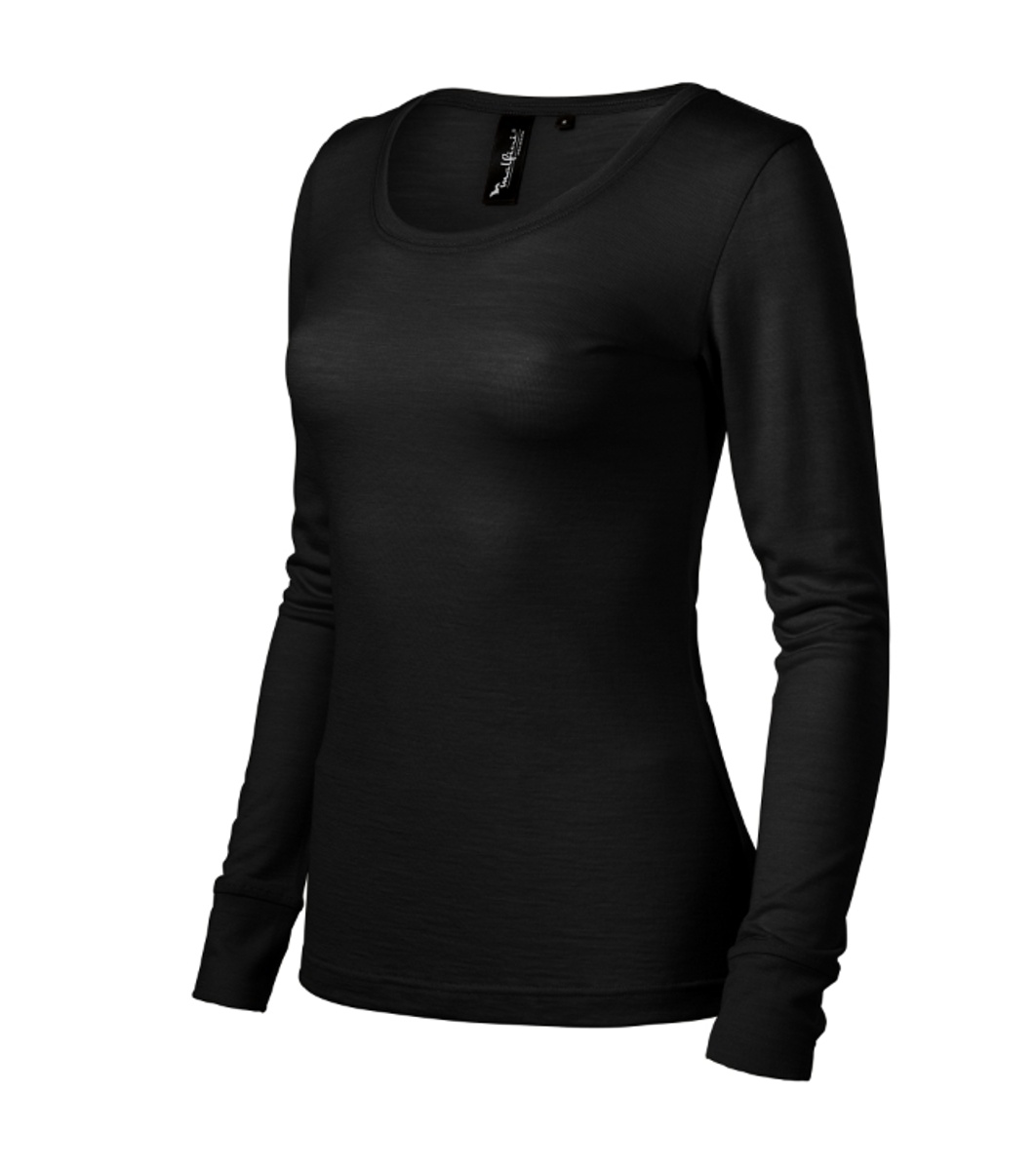 Дамска блуза с дълъг ръкав в черно от мериносова вълна Linda