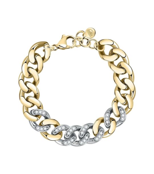 Елегантна гривна с масивна верижка и блестящи елементи. Закопчаването е с карабинер, което осигурява сигурност и удобство.