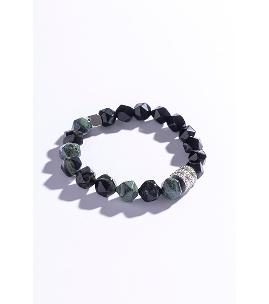 Гривна с фасетирани елементи от зелен аспис и черно стъкло