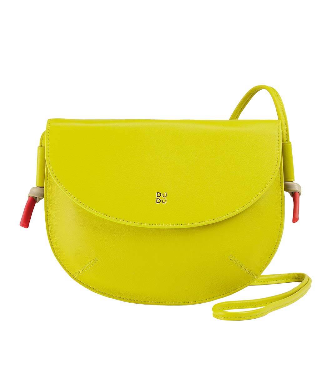 Дамска кожена чанта за рамо в цвят лайм Raila