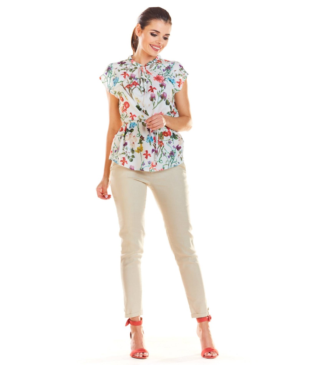 Дамска многоцветна блуза в екрю с флорален принт Kristin