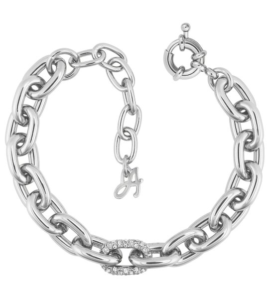 Гривна с големи звена и декоративен елемент. Закопчалката е тип карабинер, осигуряваща сигурност и удобство при носене.