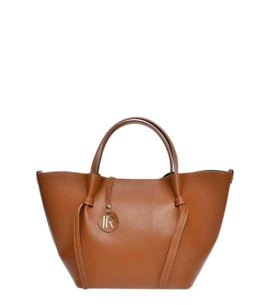 Дамска трапецовидна чанта в цвят коняк с несесер