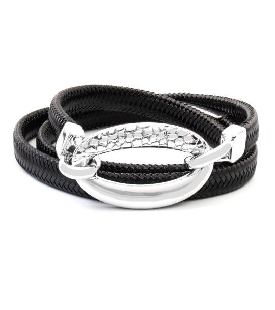 Елегантна гривна за жени, съчетаваща плетен дизайн с метални акценти. Подходяща за разнообразни поводи.