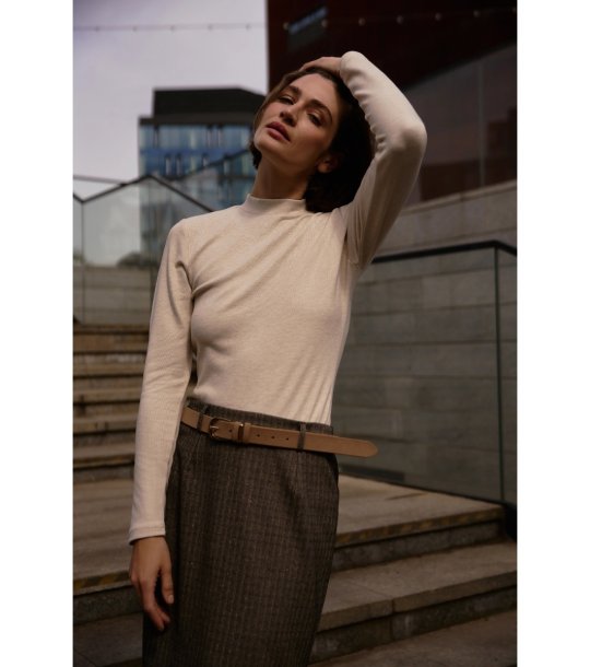 Дамски колан с изчистен дизайн и метална катарама. Разполага с няколко отвора за регулиране на дължината.