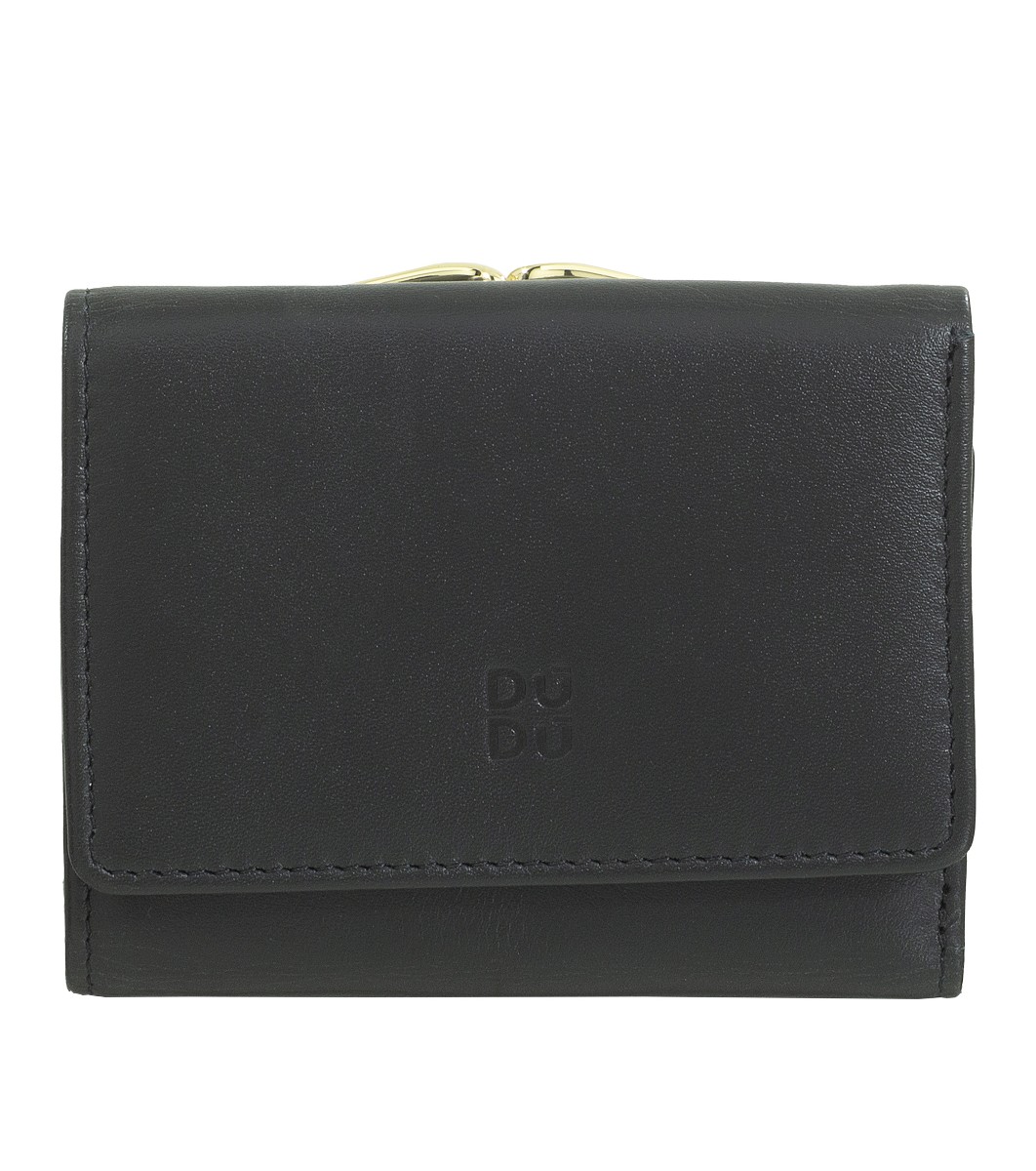 Дамски кожен портфейл в черно с контрастна вътрешна част Corsica