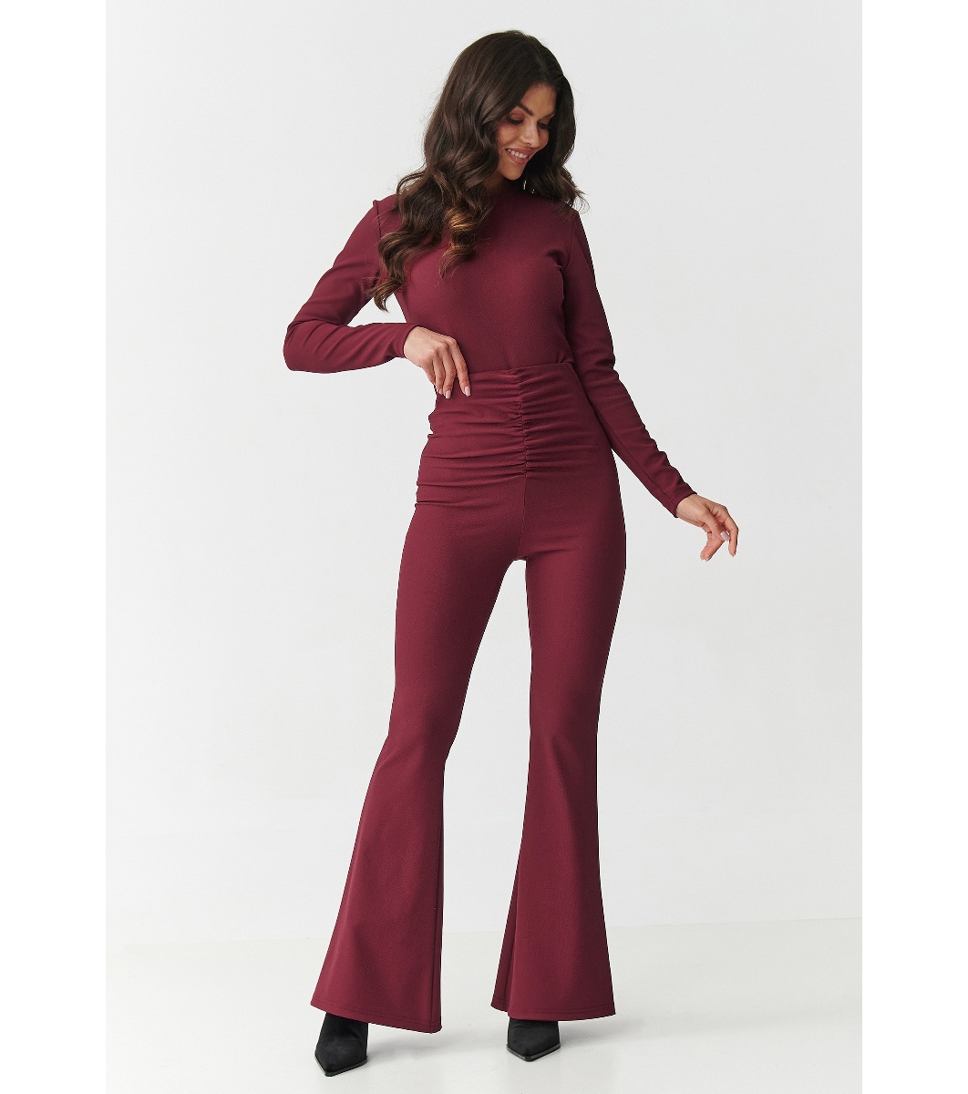 Дамски комплект от блуза и панталон от две части в бордо