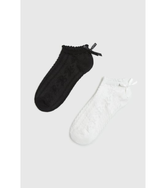 Чорапите са с къса дължина и имат декоративна панделка. Дизайнът включва ажурни детайли.
