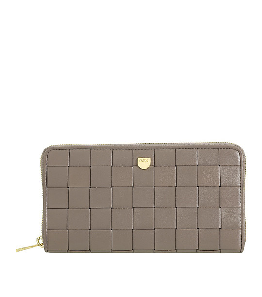 Този дамски портфейл от естествена кожа с ръчно изработени тъкани детайли постига перфектния баланс между стил и функционалност.