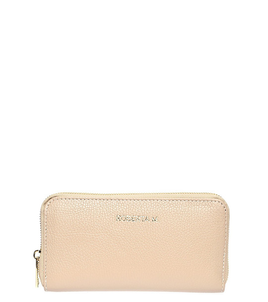 Дамски портфейл от естествена кожа в нюанс на бежов цвят Biana