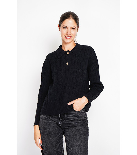 Дамски пуловер в черно с плетеници