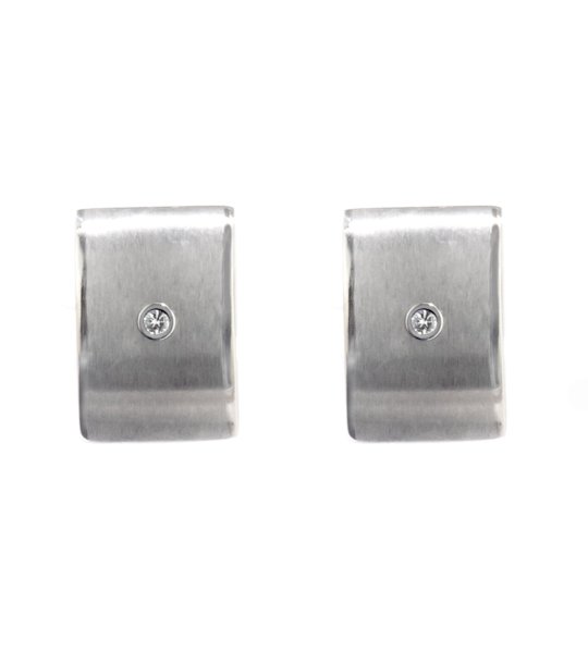 Елегантни обеци с правоъгълна форма и малък декоративен камък в центъра.