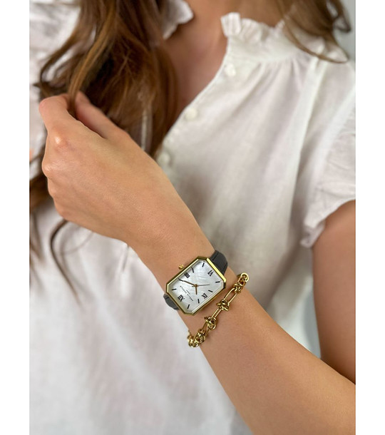 Циферблат: бял седеф; индекси: смес от римски и арабски цифри
