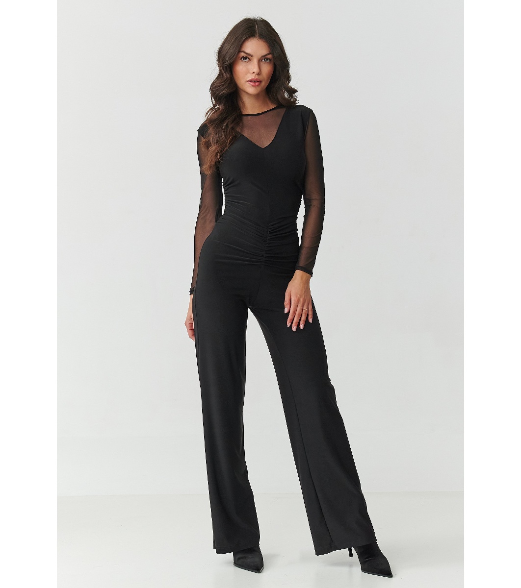 Дамски черен гащеризон с тюлени ръкави