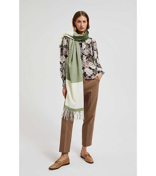 Маслиненозелен шал на каре е идеалното допълнение към вашия гардероб. Изработена от мека материя, декорирана с ресни, тя ще ви осигури топлина и стил в едно.