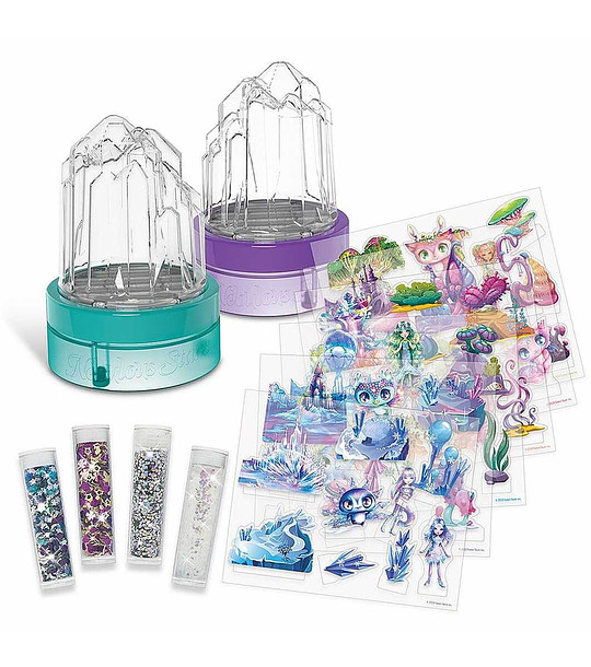 Комплектът съдържа: 2 светещи кристални глобуса 53 готови парчета декори 2 тубички блясък на прах 2 мини туби с пайети Историята на Икеания