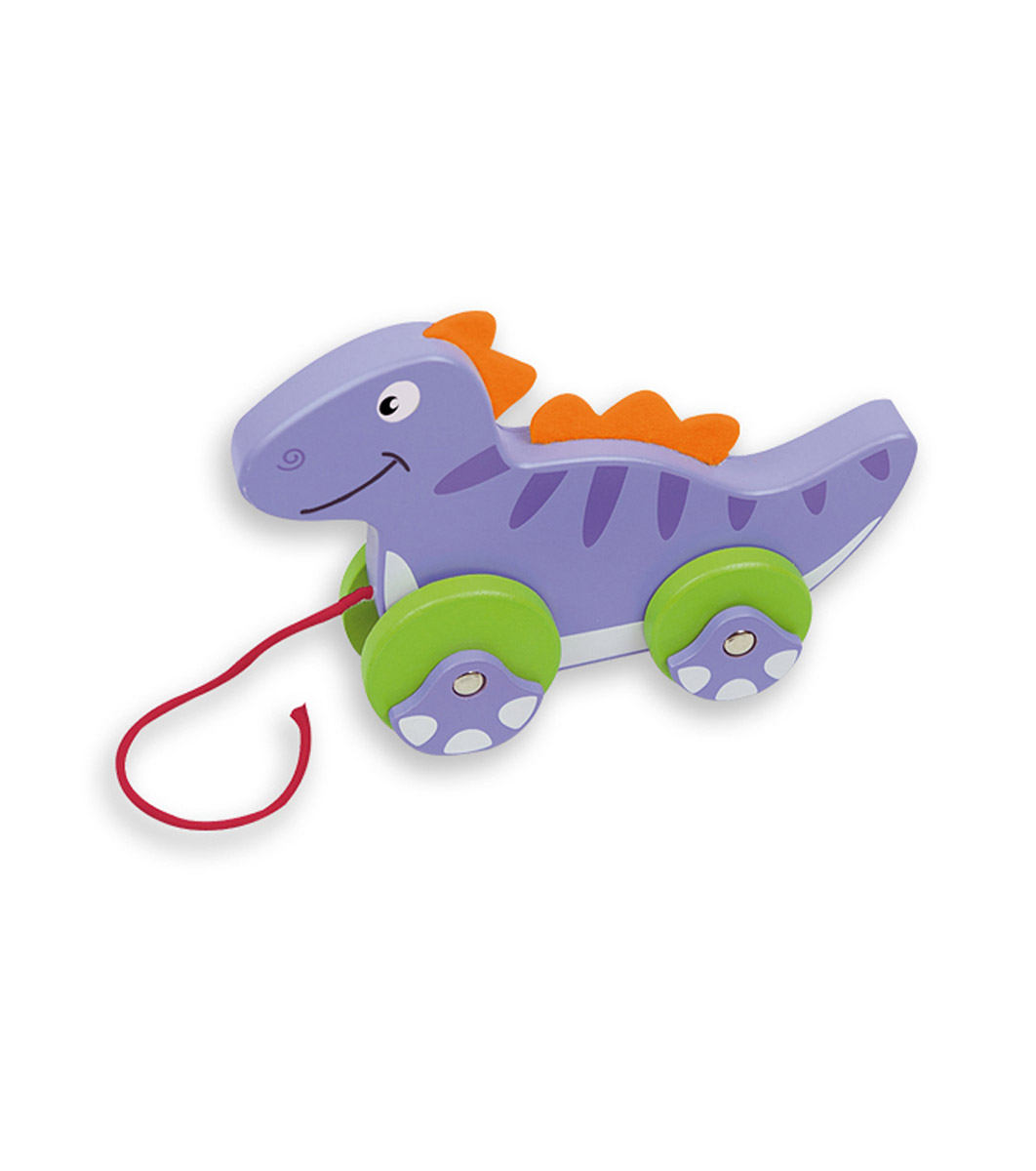 Динозавърче за дърпане, изработено от масивно дърво с връвчица за дърпане.