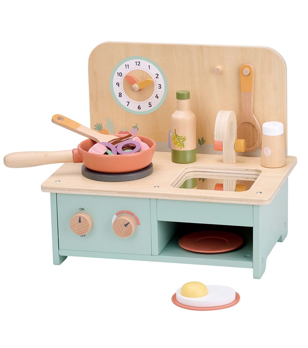Този компактен, но напълно оборудван кухненски комплект е създаден специално за малките готвачи, които обичат да имитират мама и татко в кухнята.