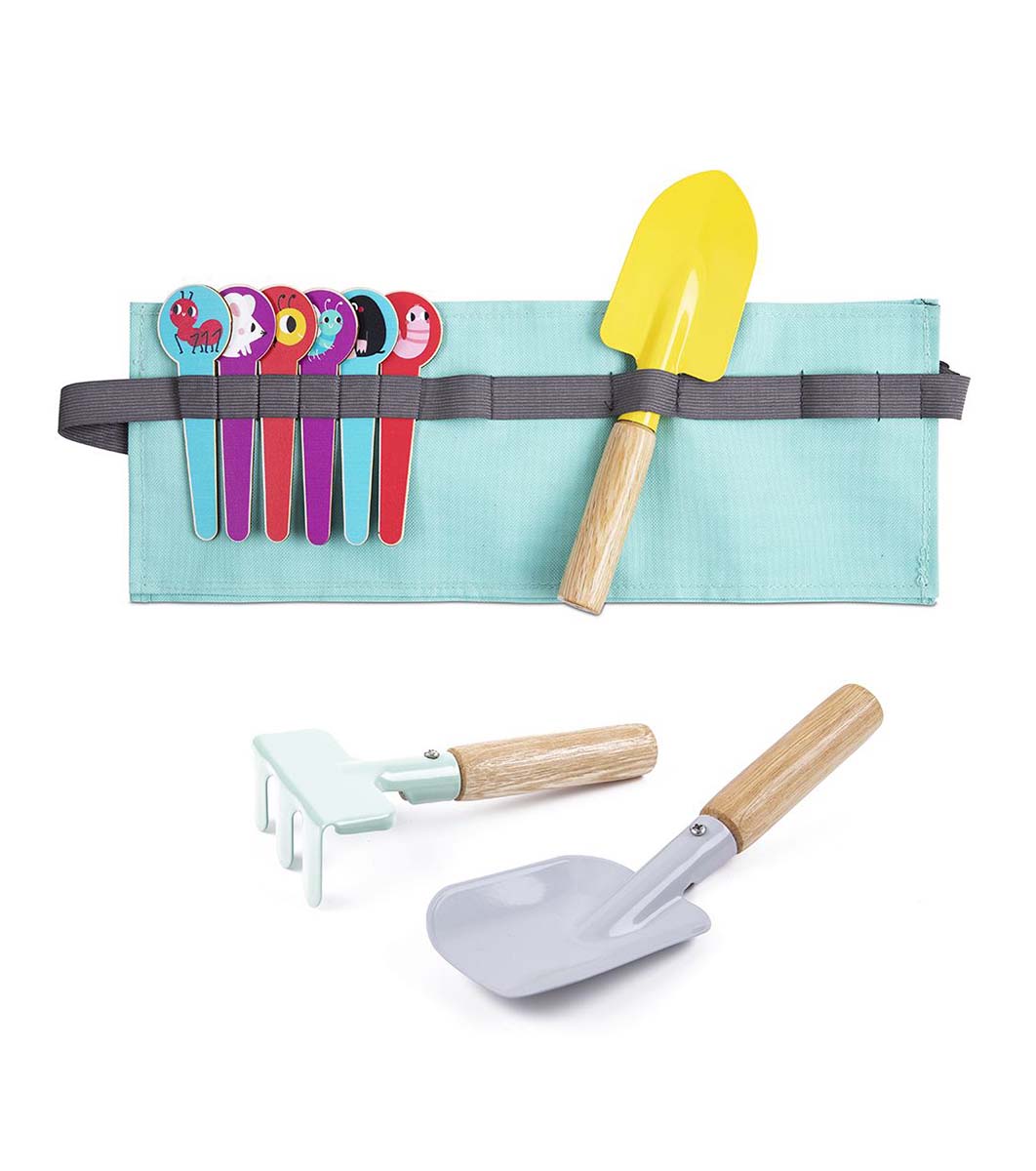 Градински инструменти, също като на баба. Удобно подредени в коланче на кръста, те ще вдъхновят всеки малък градинар да прекопае лехичките, да засади семенцата и да ги маркира.