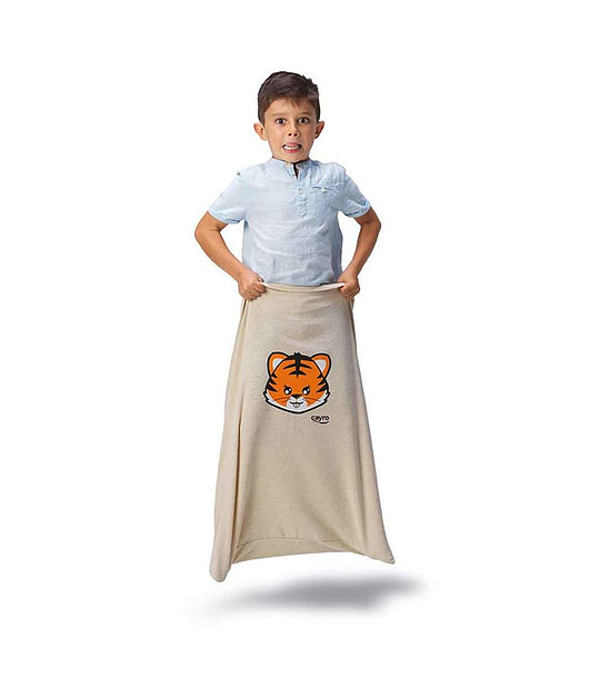 Замисляли ли сте се някога колко малко всъщност е нужно на едно дете, за да засияе от щастие?! Детски чували за скачане, е играта която позволява на малчуганите да се забавляват, както на открити, така и на закрити помещения. Те са направени от висококачествени платове, като на всяко чувалче има изобразено с ярки, пъстри и шарени картинки различни животни - панда, коала, слонче и тигърче. Те привличат греещите от щастие детски очички право към себе си. Правилата на играта са познати, както на малки, така и на големи след като влезете в чувала скачайки трябва да достигнете финалната линия. Играта позволява да се използва от 2-4 играчи. Не забравяйте деца, че ако ви е нужно по-голямо приключение и забавление на Вас и Вашите приятели, винаги може да добавите трудности по терена, които трябва да заобиколите. Играта спомага за подобряването на двигателните умения, подобрява креативността и въображението на малчуганите. Подсилва зрителното възприятие и пространствено визуализиране. Подобрява концентрацията и координацията между очите и ръцете. Играта детски чували за скачане е страхотен начин да накарате своите малки съкровища да грейнат от щастие и да създават нови приятелства!