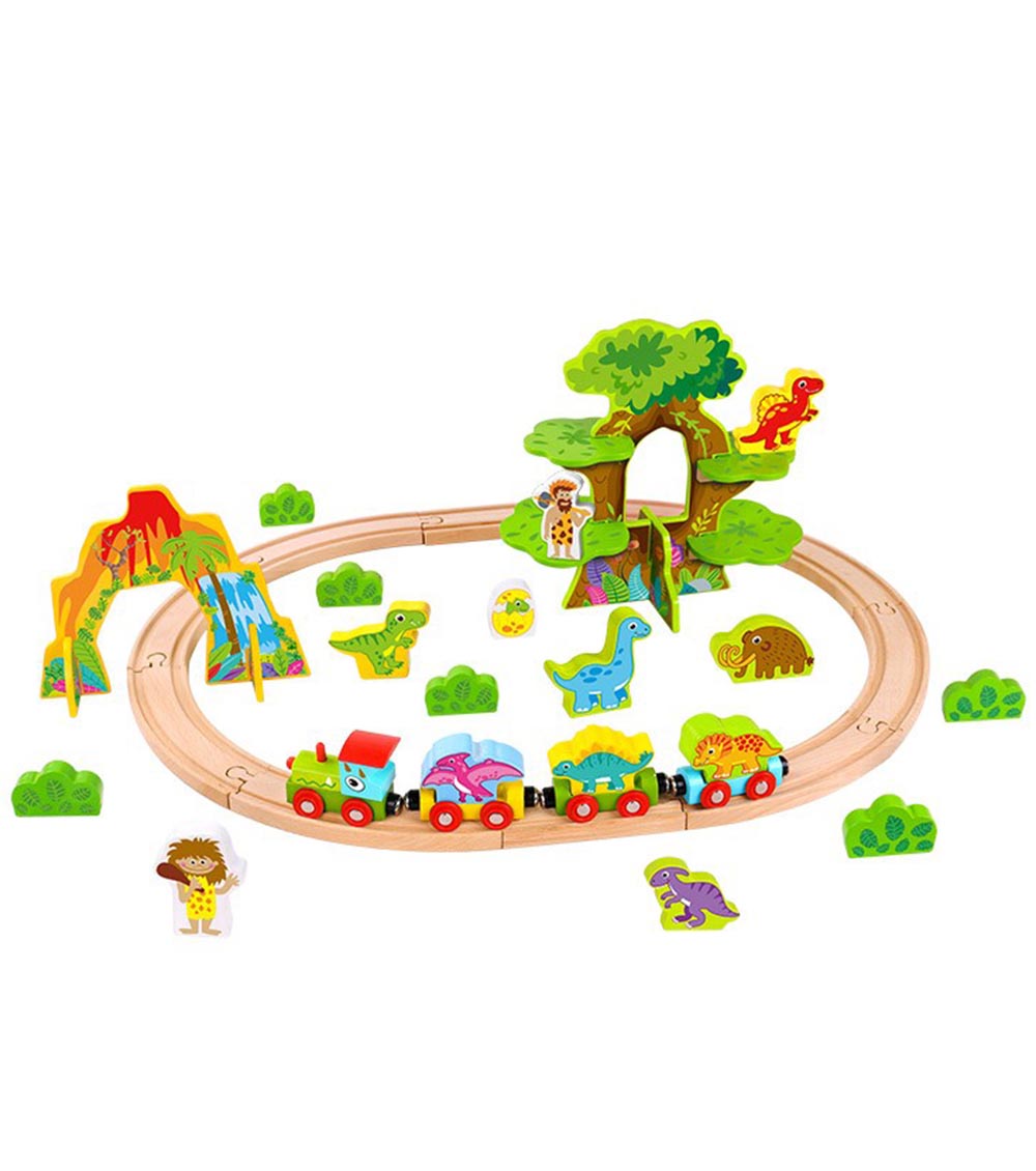 И не само! В комплекта ще намерите динозаври, праисторически хора, както и още аксесоари - храсти, дърво и тунел за дървения влак.