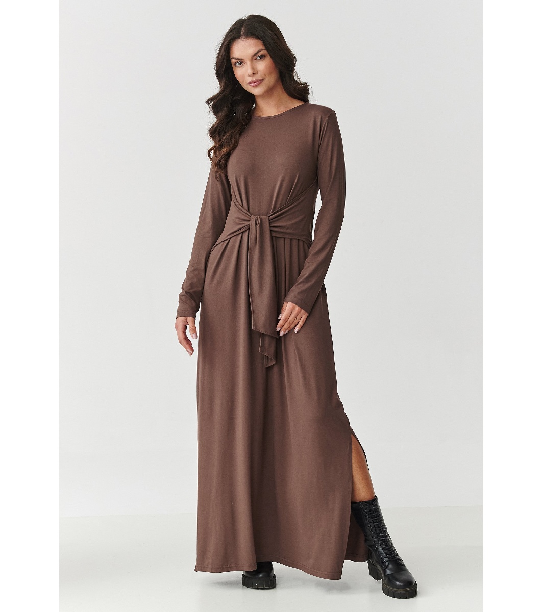 В предната част има дълги връзки, които се стягат и връзват на талията.