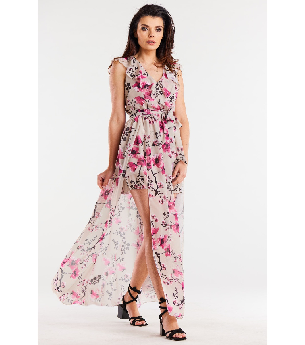 Дълга рокля в принт черешов цвят Elif