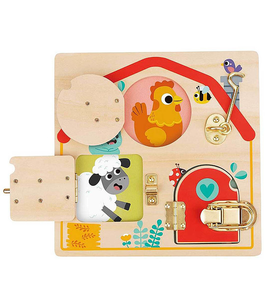 Ако не сте готови, все още, от Tooky Toy са ви подготвили възможност да потренирате различните начини на заключване - с промушване, с приплъзване и закопчаване.