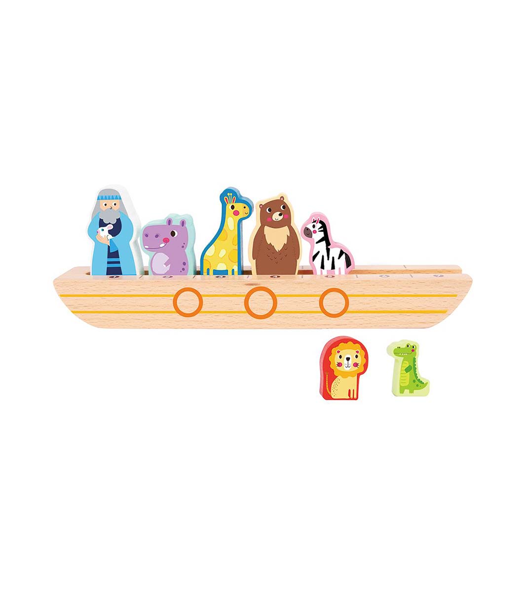 Комплектът се състои от ковчег, жираф, хипопотам, мечка, зебра, лъв, крокодил и Ной, разбира се.