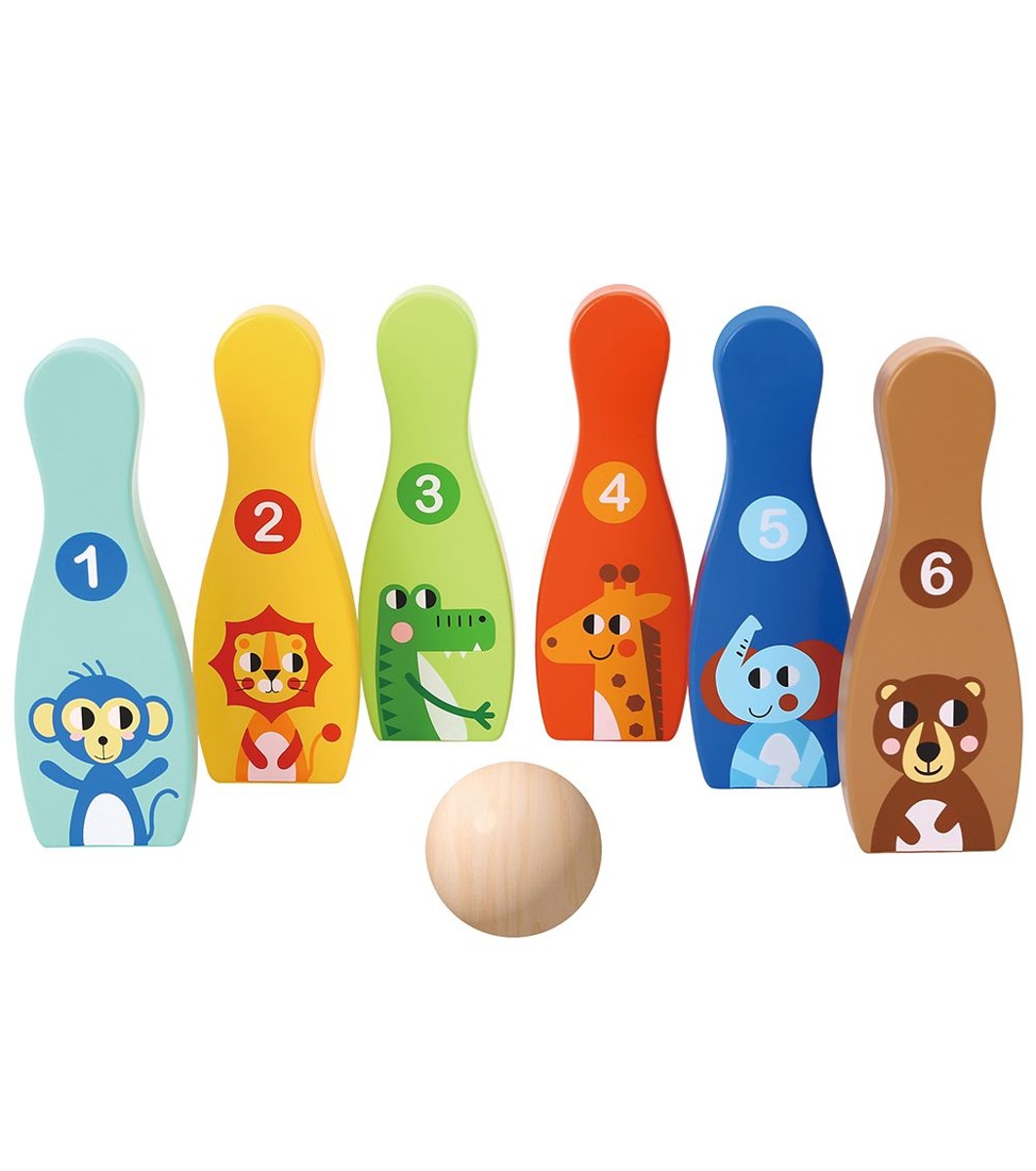 Дървен боулинг с животински мотиви Превърнете всяко пространство в игрална зона с очарователната дървена боулинг игра на Tooky Toy TH295