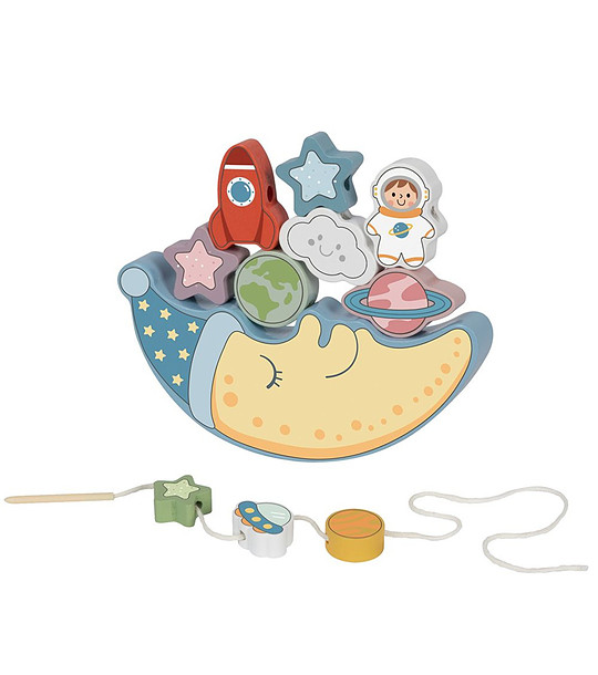 1-2 години, 2-3 години, 3-5 години, 5-7 години, 7-10 години Търсите ли играчка, която обединява баланс и низане в едно?Вашето дете обича ли да изследва Космоса?Представяме ви двустепенна занимателна игра за малки астронавти на Tooky Toy - 2 в 1 комплект за баланс и нанизване!Какво включва комплектът?