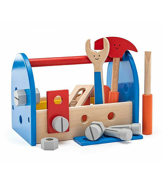 Всеки малък мъж иска да помага на татко си докато ремонтира нещо. Това са комплект с дървени инструменти, с които детето ви ще може да играе и да се учи безопасно.