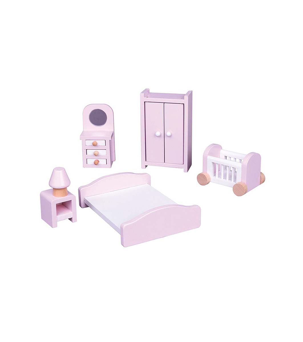 Комплектът се предлага в елегантна цветна картонена кутия. Мебелите могат да бъдат чудесен подарък за момиче, което обича да играе с дървени къщи.