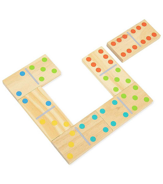 Всяка плочка на доминото има числа изобразени със съответния брой точки, и оцветени в различен цвят, съответстващ на числото. По този начин детето усвоява основните математически умения и концепцията за последователност и цветова асоциация.